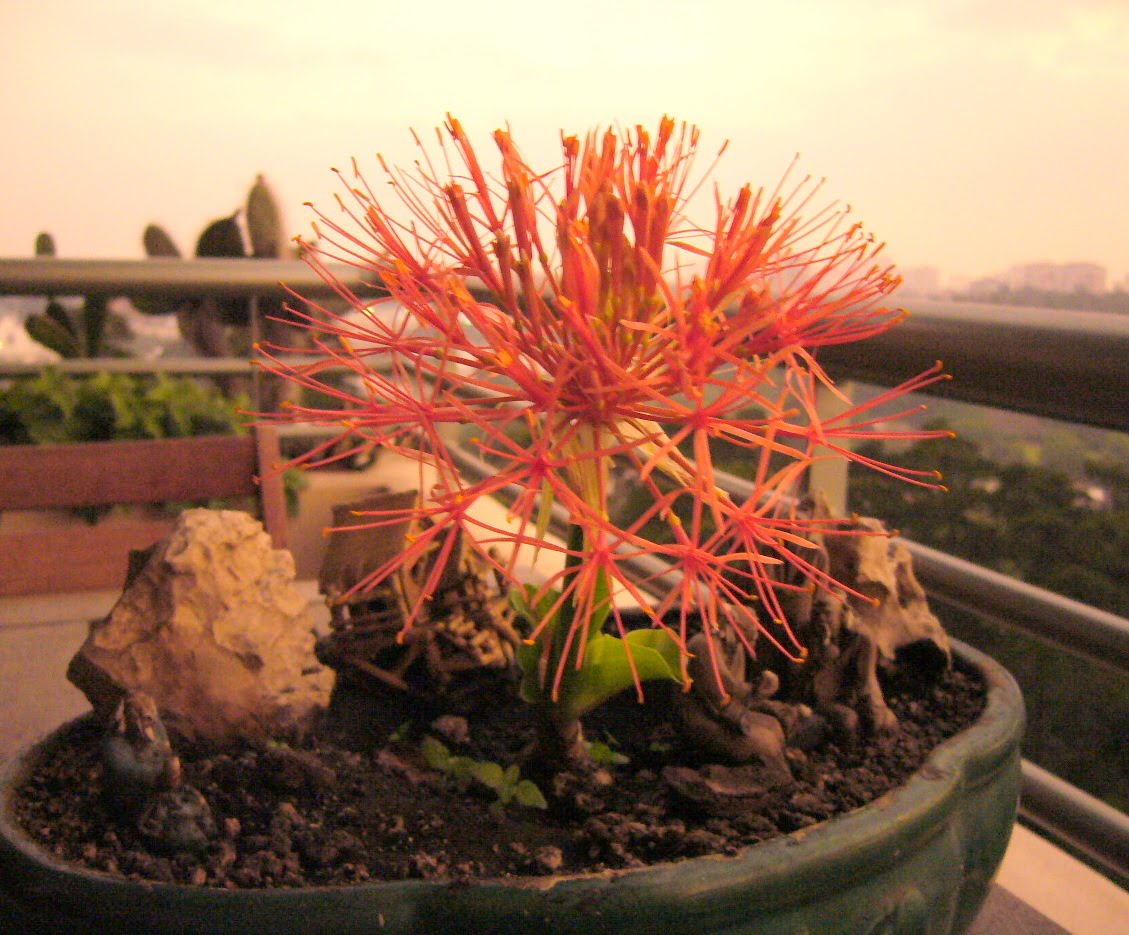 El lirio japonés que adorna mi balcón floreció este año. No lo hacía desde 2007 y al pobre lo había condenado hasta el punto de que su bulbo está a medio enterrar. Mmmmm, quizás es llevado por mal.