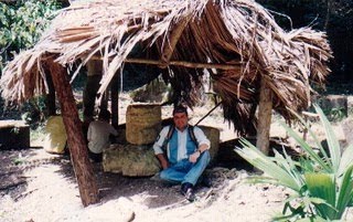 En la foto estoy en Perú-Waka. En esa ocasión viajamos de Flores a Paso Caballos; y de ahí tomamos lanchas por el río hasta llegar a un muelle. Luego caminamos por la selva hasta llegar a la ciudad maya. Esa noche dormimos en carpas en una estación para el cuidado de guacamayas.