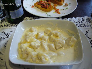 En la sala de la casa que era de José Cecilio del Valle, el sábado almorcé un buen plato de gnocchi con queso gorgonzola, precedido por riquísimas ensalada caprese, vegetales asados y aderezados con aceite de oliva, y bruschetti . Don Chilo fue un estadista del Siglo XIX, conocido como El sabio Valle; y él redactó el acta de Independencia de Centroamérica. El restaurante conserva el cielo falso de la casa antigua; y el inmueble exhibe una magnífica puerta principal que -aunque rayada por grafitti– todavía muestra su dignidad.