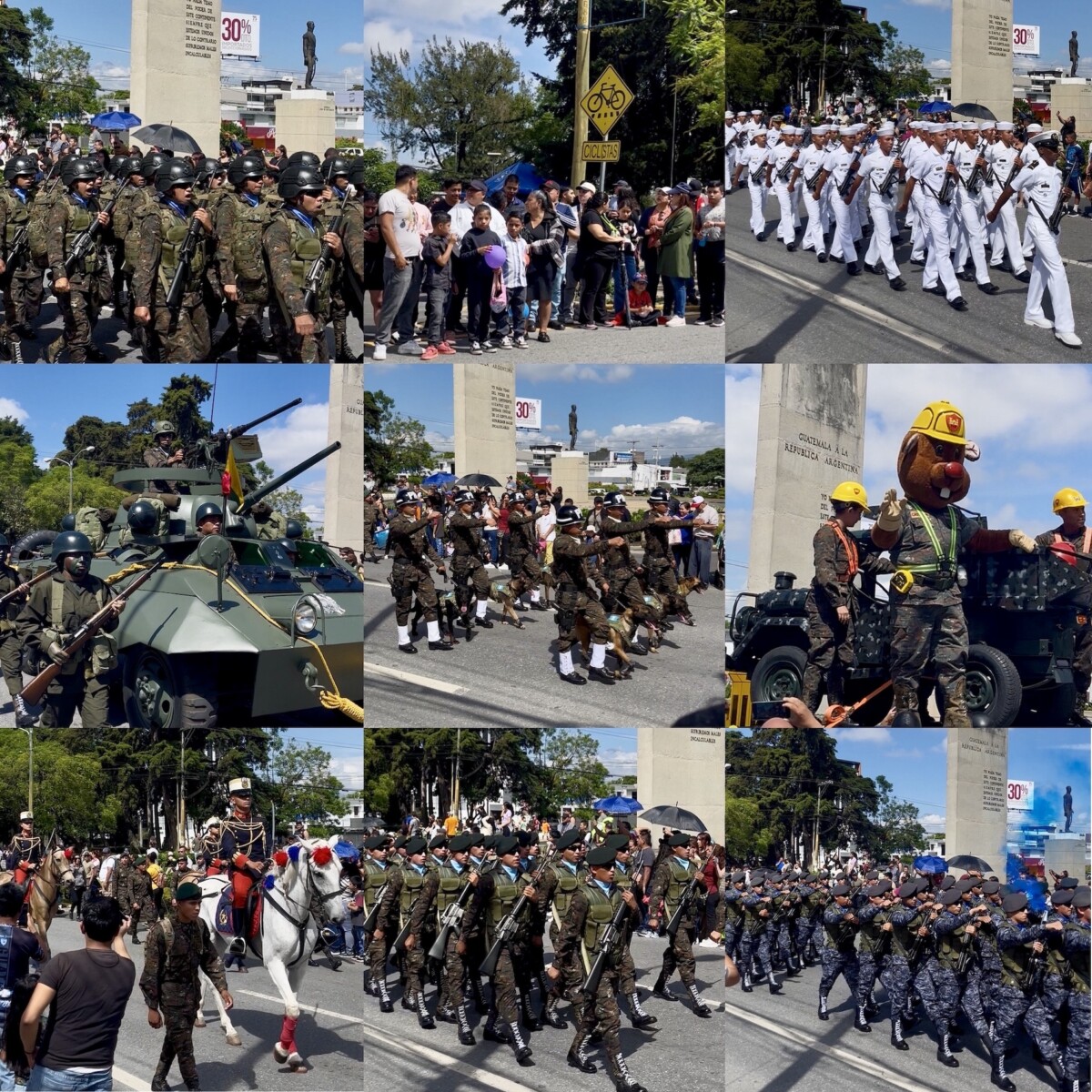 Este año sí pudimos asistir al desfile con el que se celebran el Día del Ejército y la Revolución de 1871. Amanecimos a las 6:00 a. m. en Amatitlán y a las 9:00 ya estábamos desayunados y todo en la Avenida de las Américas. Les tengo gusto a los desfiles desde que iba a verlos con mi abuelita Juanita y mi tía abuela, La Mamita. Ese par de viejitas nos llevaban —a mi hermano y a mí— a desfiles y procesiones desde que éramos muy chicos.