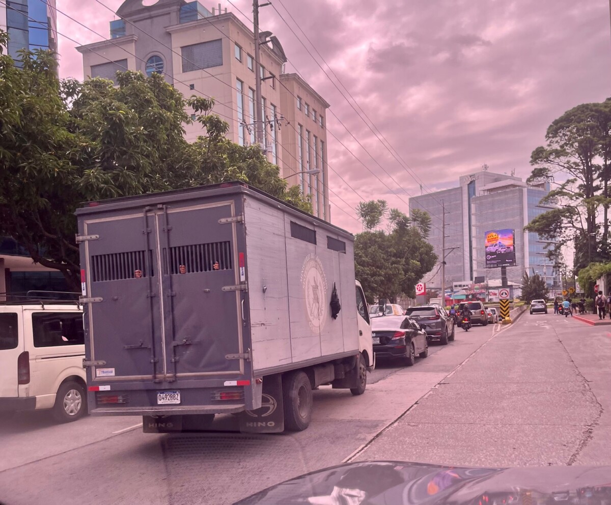 El martes de los temblores iba yo por la Calle Real de la Villa de Guadalupe cuando vi este camión del Sistema Penitenciario de Guatemala. ¿Qué notas?
