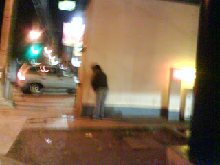 El meón de la primera foto hace lo suyo bajo uno de esos muebles de propaganda electoral tan ubicuos en estos días; y hace poco, Raúl vio a una señora dandole el pecho a su chiquito bajo uno de esos muebles en plena lluvia.