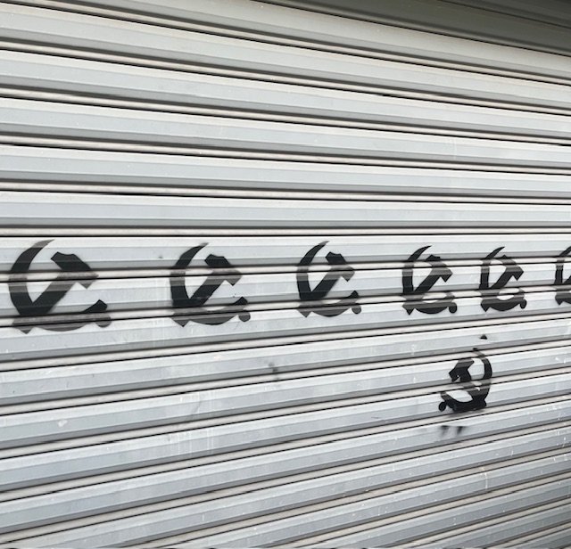 Las pintas de hoces y martillos siguen a muchas manifestaciones de movimientos populares. Haz clic en la foto para ver más de esto.