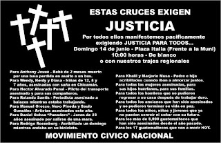 Estas expresiones son muy importantes; pero ciertamente que muchos chapines no pueden asistir siempre. Yo sugiero que todos deberíamos poner listones blancos en nuestros autos, casas, motos y bicicletas para adherirnos a las demandas de paz y justicia. Y para solidarizarnos en esta gesta cívica.