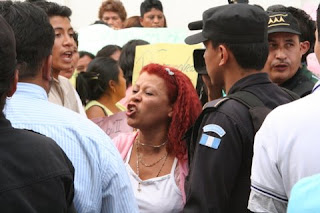 La foto es de una de las manifestantes oficialistas que fueron enviadas frente a la Casa Presidencial, durante la gesta del 12 de mayo de 2009. Parte de esta entrada fue publicada en el diario Siglo Veintiuno.