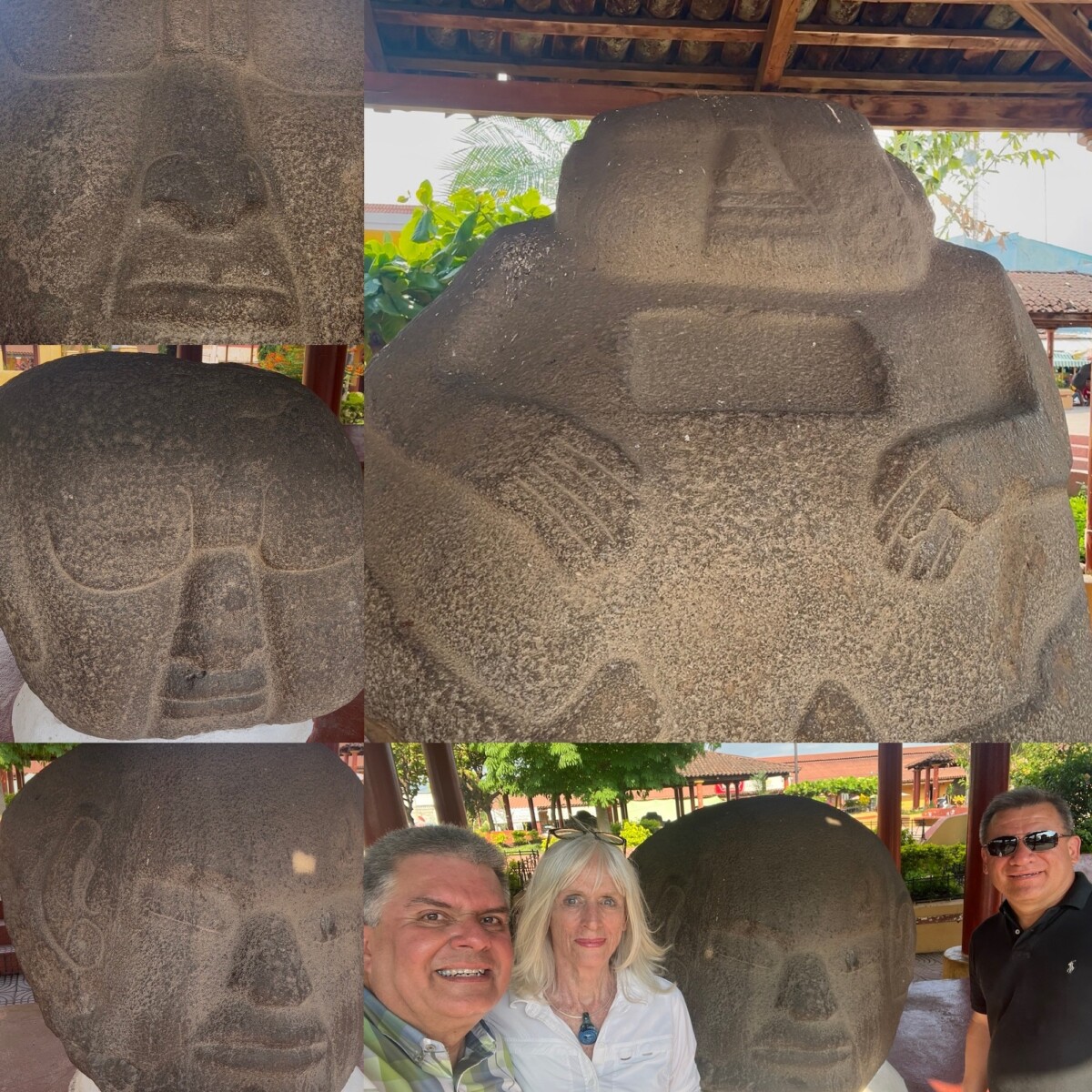 Luego de las atenciones y guía de don Selvin en el museo, visitamos la iglesia de la población que yo no conocía de mis visitas anteriores (también fui a La Democracia en una excursión del Liceo Minerva cuando estaba en segundo básico, en 1975). Lissa, Raúl y yo paseamos por el parque y curioseamos entre los barrigones y las cabezas colosales. Traté de comprobar el magnetismo que hay en algunas, pero fallé porque en ese momento no me acordé de que ese fenómeno se produce en zonas muy específicas de algunas de las piezas.