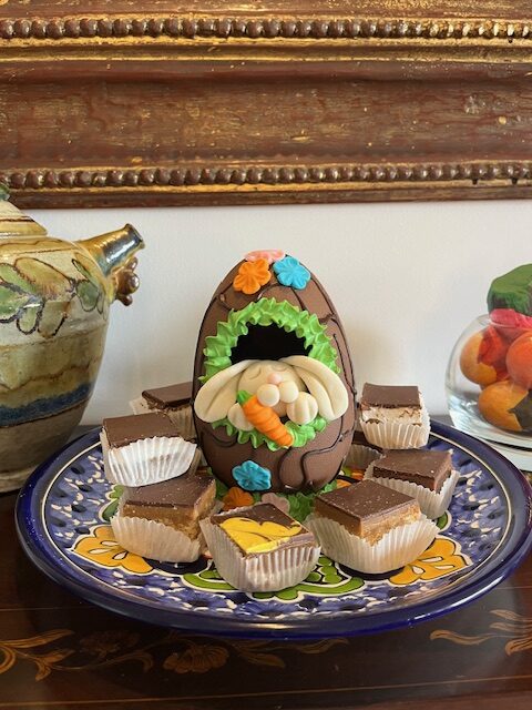 La fiesta de Pascua o Easter es una de luz, vida y fertilidad y por eso nos gusta en casa. El día comenzó con por lo menos media hora de campanadas en la iglesia de la Villa de Guadalupe y siguió con un desayuno de chilaquilas con chirmol y frijoles parados con crema de Acul, Quiché. Este año no se me olvidó comprar conejo y chocolates, que acompañamos con pastelitos que uno de mis hermanos trajo ayer.
