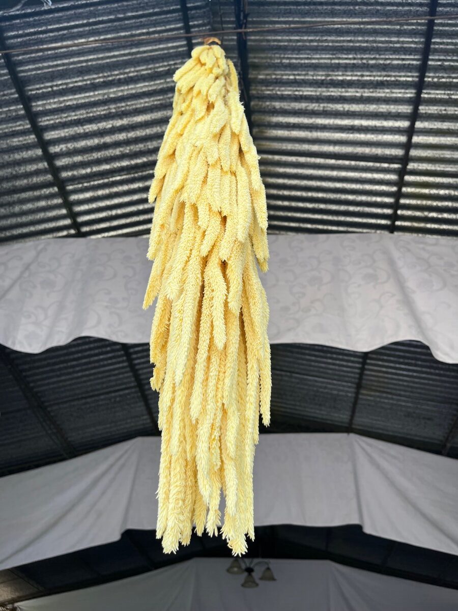 Luego de una siesta brevérrima (¿cómo iba a faltar mi siesta?) salimos a caminar por los alrededores de la casa porque Emma tiene la dicha de vivir en una urbanización que todavía es campestre. Su abuela y su tío Raúl también crecieron en el campo, en la costa sur, de modo que esa vida es la continuación de experiencias familiares. Bajamos chalunes (Inga vera) de un árbol y yo no conocía esos frutos que se relacionan con los cushines, los caspiroles, las paternas y las wawas. Las vainas de los chalunes son muy particulares porque tienen la textura como de corduroy, y aunque sus frutos no ricos, ricos, sí son agradables y tienen una textura que invita a saborearlos.