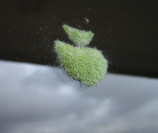 Anoche vi una como palomilla posada en mi ventana. Y aunque se estuvo ahí por un buen rato no le puse atención porque yo andaba ocupado en otras cosas. ¡Chispas!, vean lo que me dejó. Seguramente son huevos y de ahí saldrá una multitud de orugas repugnantes.