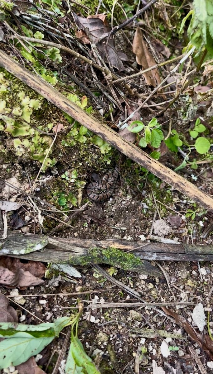 De vuelta a la casa, hijos y nietos de don Julio y doña Nohemí ya se hallaban congregados, y doña Mimí y sus nueras ya estaban preparando el guiso de pollo tradicional que se sirve en ese día. Los tres fuereños aprovechamos para ir a descansar a la cabaña y, cuando intuimos que era hora de volver para almorzar, regresamos a la casa. En ese camino nos encontramos con una pequeña culebra, a la que no resistí la tentación de tomarle una foto.