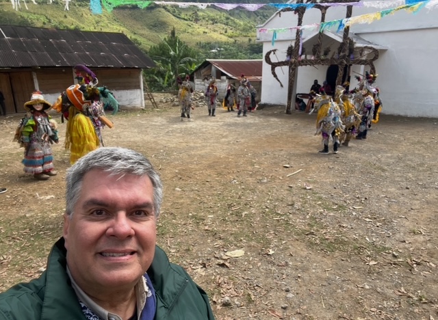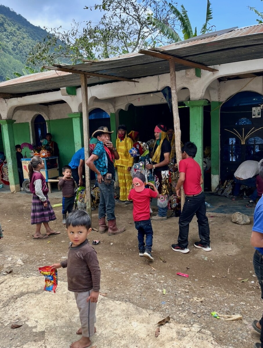 Los diálogos son muy difíciles de seguir por la distancia y por las máscaras, pero en un momento escuchamos que uno de los danzantes principales se refirió a «los que nos visitan» y, como Lissa, Raúl y yo éramos los únicos fuereños en el lugar, supusimos que éramos nosotros y agradecimos el gesto. Además, los perros y los micos, que son representados por niños, no perdían oportunidad de ladrarnos y de provocarnos de forma juguetona. Un grupo de chicos se acercó para mostrarnos sus dinosaurios de plástico con los que juegan.