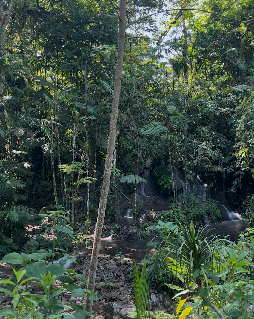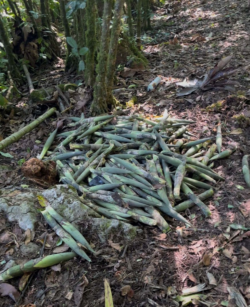 Es lunes y la mañana (que empezó tarde) nos invitó a caminar un poco antes de ir a desayunar; pero a caminar con una taza de café con leche en mano, por supuesto. Durante el paseo vimos varios cortes de pacayas, ya que es temporada de cosecha de pacayas allá en El Soch; y también entramos a una parte del sitio arqueológico que no habíamos visitado antes.