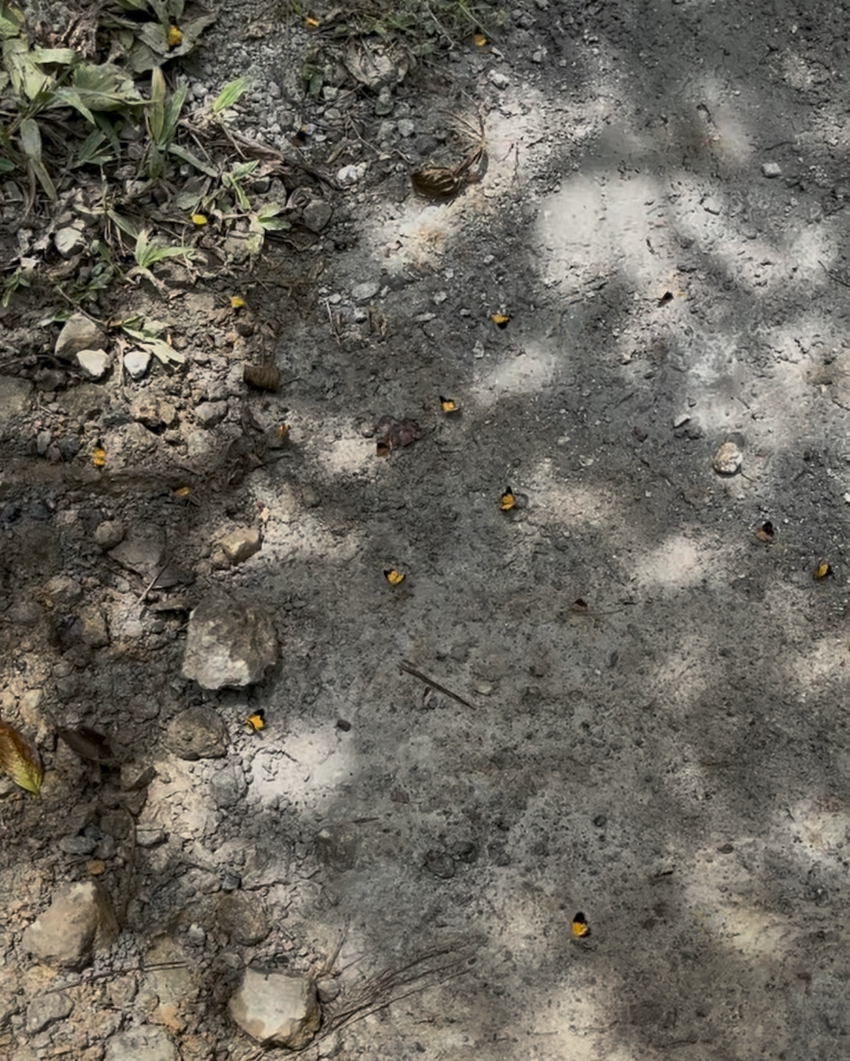 Poseídos por ese espíritu de relajamiento, nos cautivaron una bromelia hermosa y un grupo de mariposas pequeñas de colores amarillo y negro.