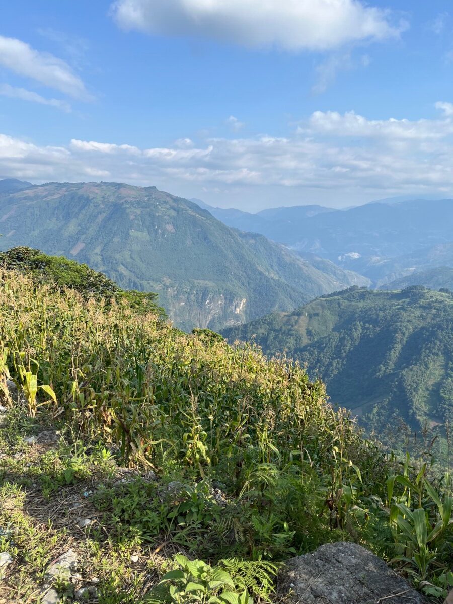 La siesta fue brevísima porque el plan era subir hacia El Amay, en dirección a la Zona Reina para, desde esa cumbre, gozar de las vistas, del valle y del día brillante. Ese cerro forma parte de la sierra de Chamá y se sube por un camino de piedras. El nombre viene del vocablo pocomchí Aj’may, que es un tipo de bambú de la región. El camino conduce a La Parroquía, en la Zona Reina, a donde no teníamos intención de llegar porque queda bien lejos.