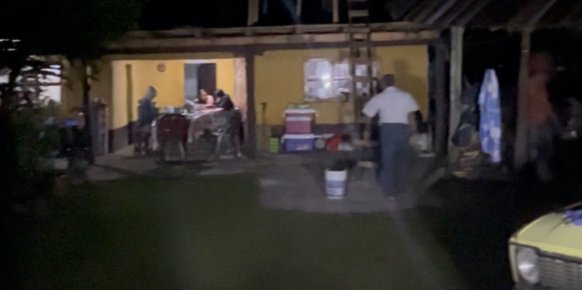 En compañía agradabilísima de la familia de don Julio y de doña Nohemí, la cena fue una aventura porque don Julio y los muchachos castraron una colmena silvestre que había crecido peligrosamente junto al sitio arqueológico. Las abejas nos rondaban mientras cenábamos y picaron a uno de los nietos de don Julio. Comimos miel directamente de pedazos de panal y a Raúl lo picó una abeja en el labio. De cena comimos un estofado con jerez que habíamos preparado en casa y, de postre, hubo moyetes de Tres Generaciones, mismos que dos nietas de don Julio habían estado bañando en miel ligeramente aderezada con ron Zacapa. Fue una cena familiar encantadora, animada por la presencia de las abejas.