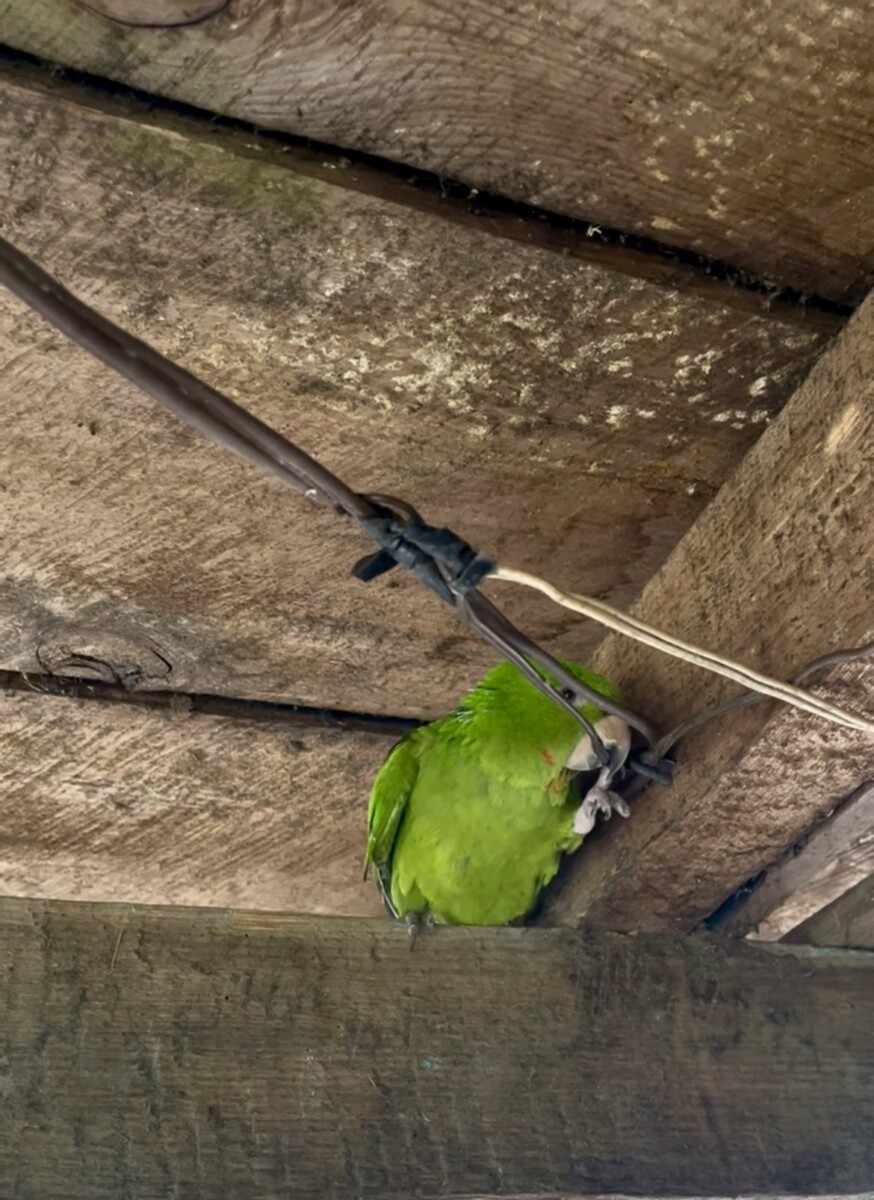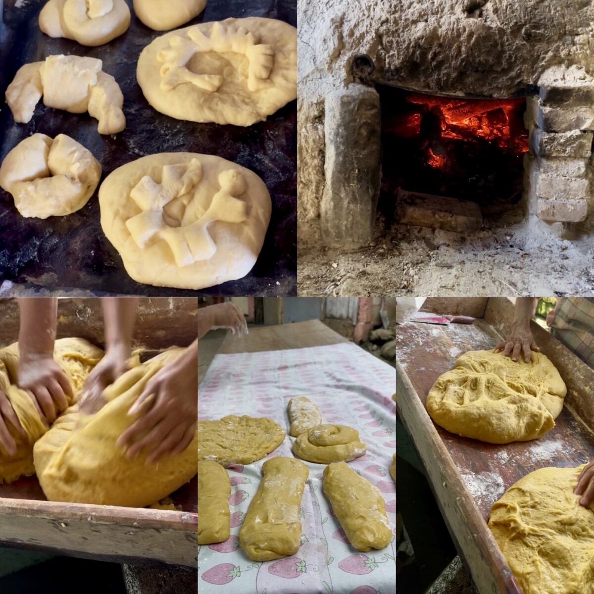 Tuvimos, pues, la dicha de llegar a tiempo para ver a las tías y a dos sobrinas de ellas en plena producción de pan. Vimos el horno encendido y las manos maravillosas amasando y trabajando las masas. Vimos las formas caprichosas y personalísimas con las que se elabora aquel alimento primordial. Les dijimos adiós al célebre lorito que escapó del gavilán en 2024, al que apodé El Barón Rojo; y nos despedimos de las oropéndolas que hay en el jardín de las tías. Luego de los abrazos y de las despedidas, bajamos a la cabaña para cargar el carro y emprender el retorno.